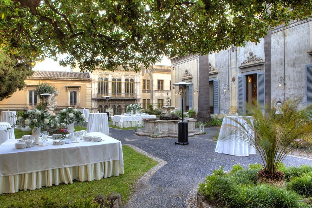 In the heart of the historic center of Catania, Palazzo Manganelli represents a special location to celebrate your wedding in style. The ancient structure dating back to the eighteenth century, evokes atmospheres of other times and will envelop you in an enchanting and romantic environment, where the dream of a fairytale wedding can become reality.