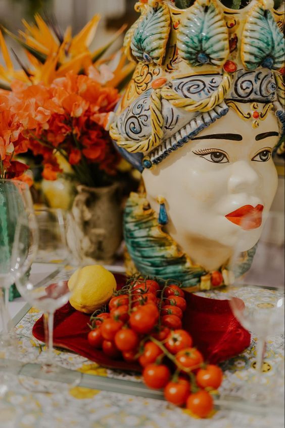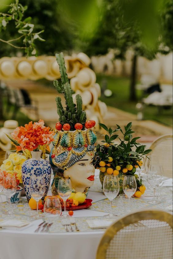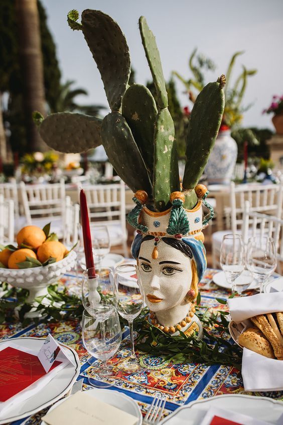 2. Centerpieces with a Sicilian Soul: Testa di Moro and Nopal Flair