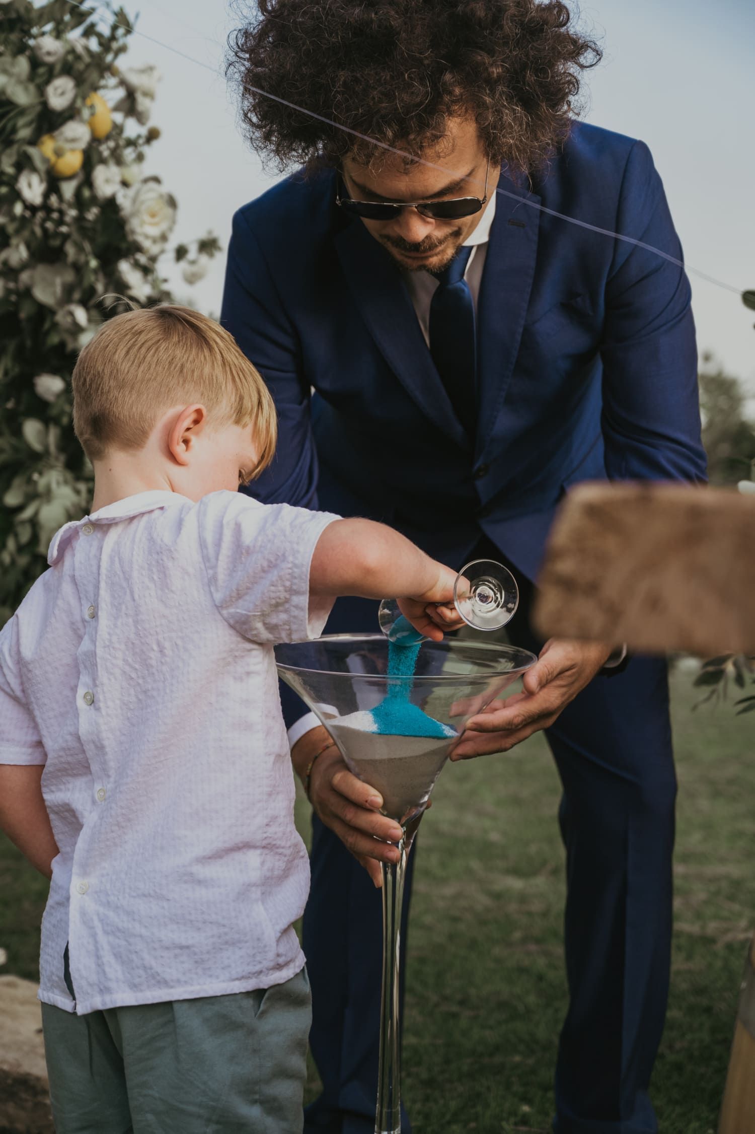 "Sand Ritual", where each audience member is given a small container of sand. They make a wish for the couple and then pour their sand into a larger container, symbolising their support and wishes for the couple’s journey. Family members and the couple also participate, creating a powerful symbol of combined support and commitment.