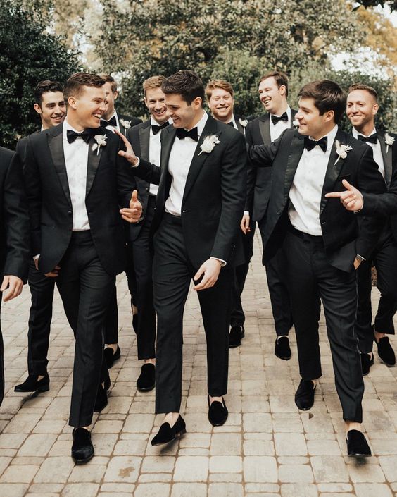 Ties or accessories matching the bridesmaids' dresses can be a tasteful way to create a cohesive appearance within the wedding party. Attention to detail is crucial; well-polished shoes, a neat haircut, and a subtle yet elegant boutonniere complete the look.